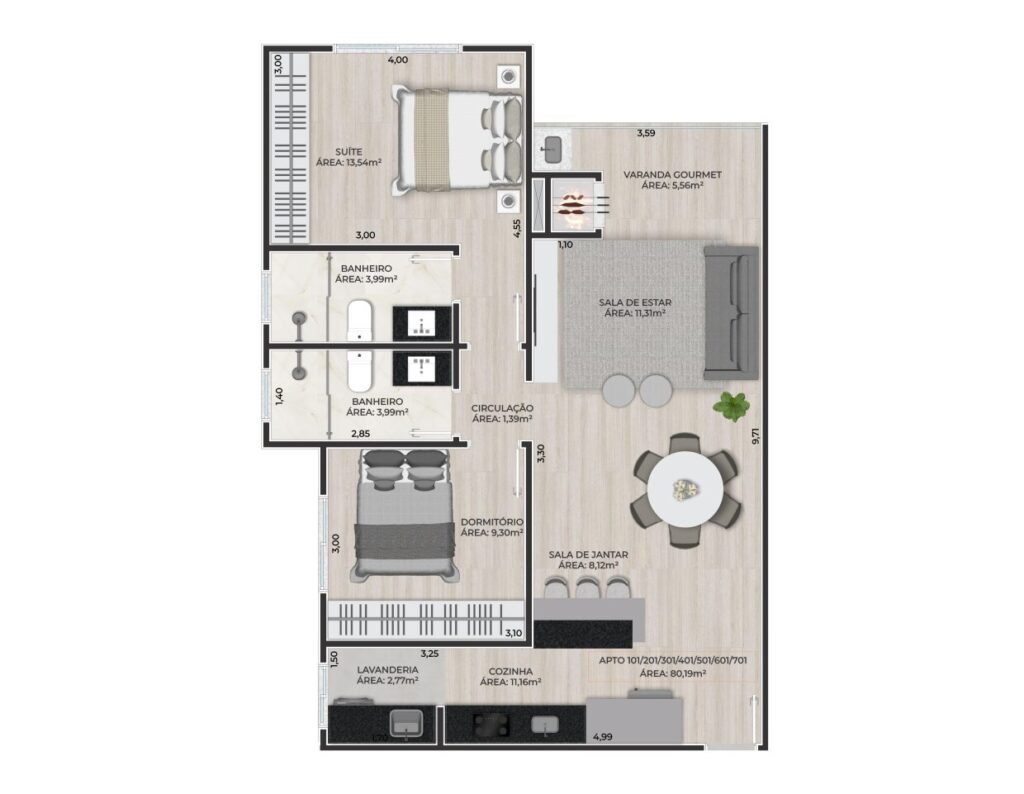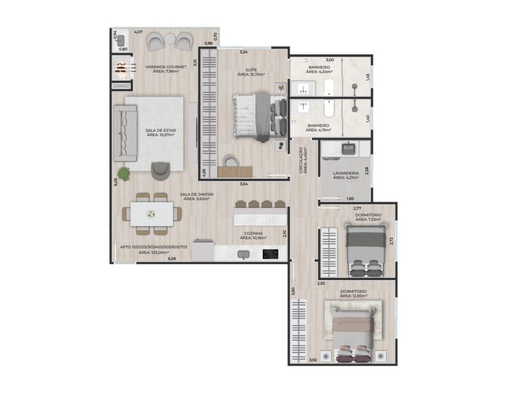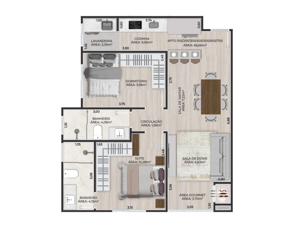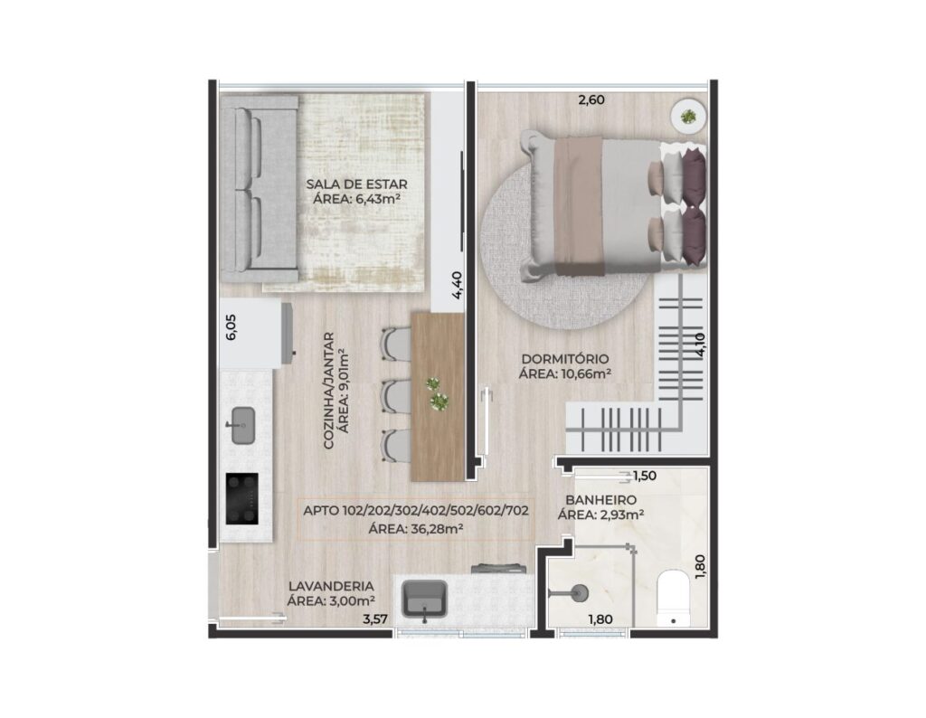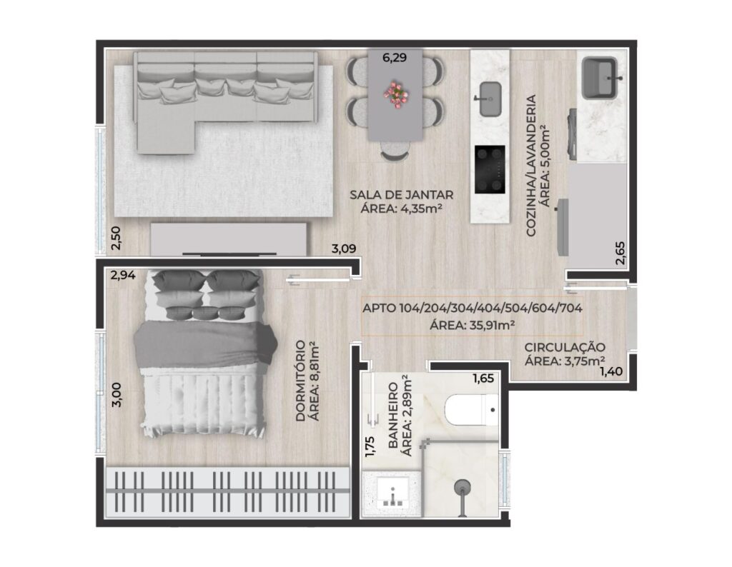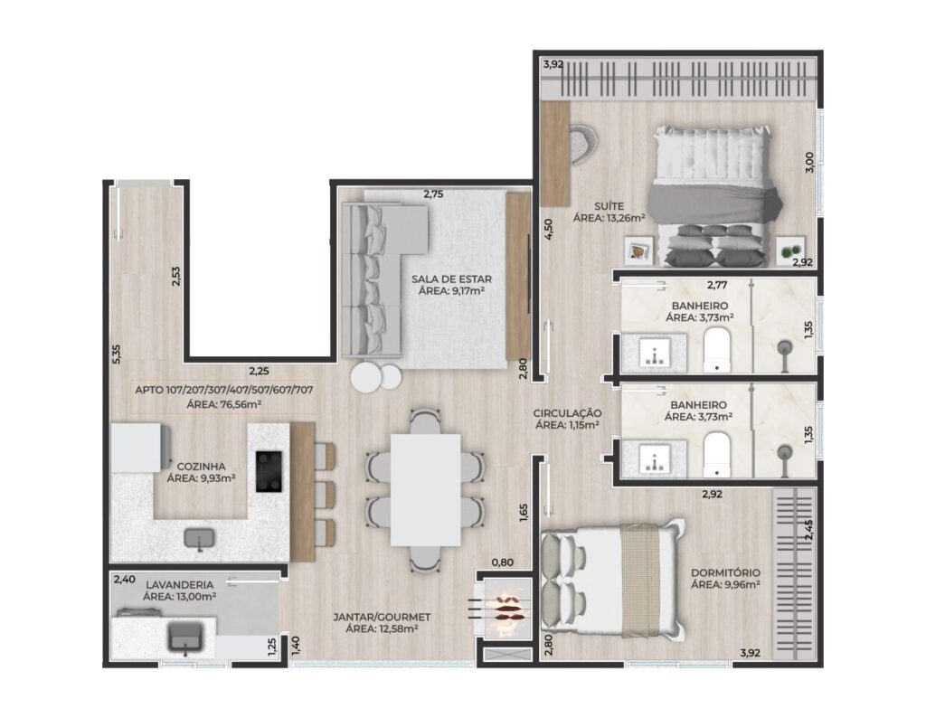 . Piso em porcelanato e laminado